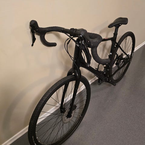 Cykel är helt nyservat, allt fungerar som det ska och är redo att rulla ut på gruset. Den kommer med nya 45 mm Pirelli Cinturato däck, ny gravel specifik styrlinda, nya broms och växel-kablar.