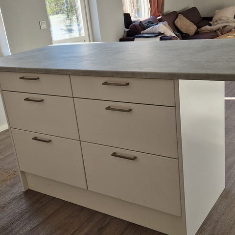 Fin köksö från IKEA med tillhörande barstolar. Mått finns på bilderna från IKEAs hemsida. Tyget på stolarna är ljusgrå som ni kan se på bilden Nypris för köksö+stolar 5600sek. Hämtas i Huskvarna.