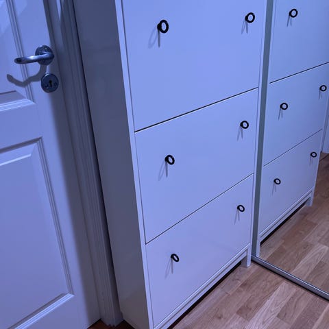 Skoskåp och hatthylla IKEA slumpas bort i flytt. Finns hämta dagtid vardag.