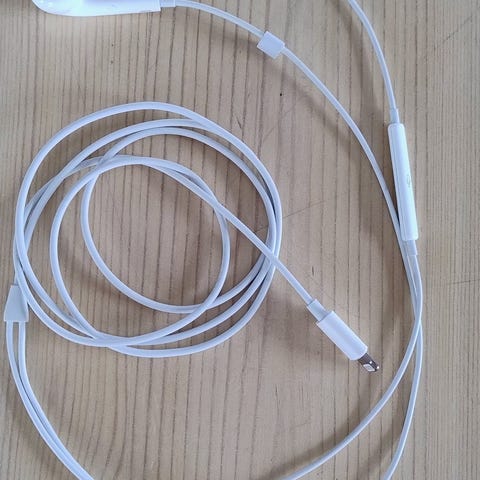 Apple headset i vit färg. Trådlöst headset med laddningsfodral. Passar för allmän användning med kompatibla enheter.
