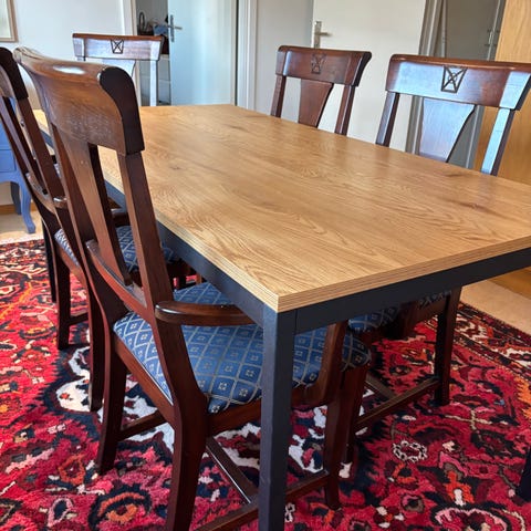 IKEA Nordviken bord i trä med iläggsskivor som förvaras under bordet, med iläggsskivorna blir bordet 223 cm vilket passar ca 8 personer.