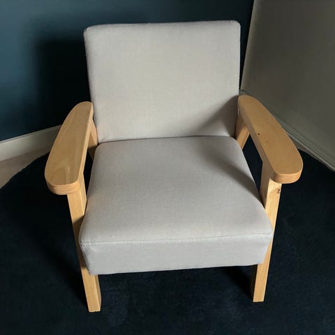 Grå barnfåtölj/sammetstol med träben