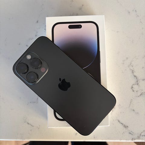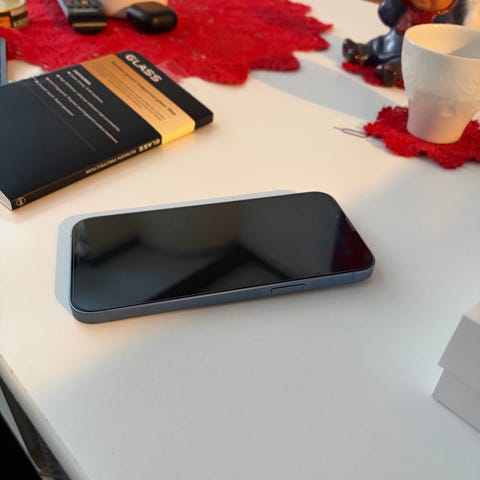 Apple iPhone 14 mobiltelefon med 128 GB lagringsutrymme. Jättefin telefon och allt fungerar på den! Inga repor men det finns en mikro spricka på den ( se på sista bilden) men överlag telefonen är fin och bra!