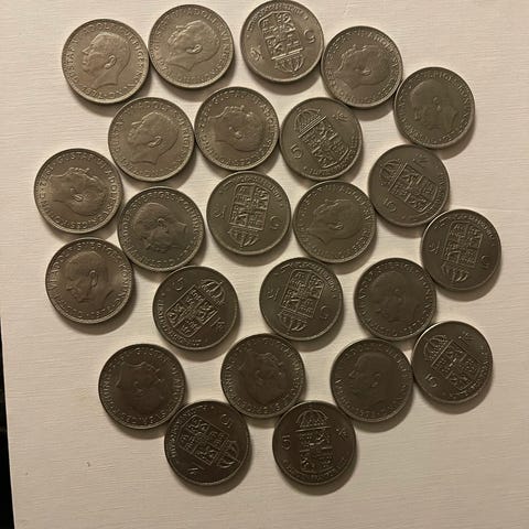 Sverige 5 kronor mynt från 1972 utan strömmar.
