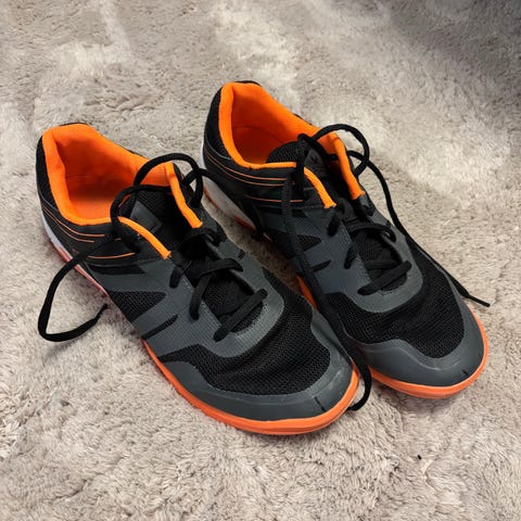 Svarta inomhusskor med gröna detaljer från Soc i stl. 35, med 3 st kardborrband.