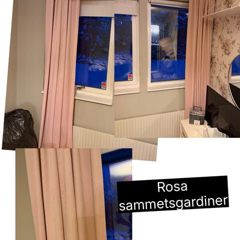 Vackert draperi i kraftigt rosa tyg med guldgult mönster. Nytvättat. Storlek: Längd 120 cm, bredd 130 cm. Finns på Södermalm i Skanstull. Kan skickas mot betalning av portot.