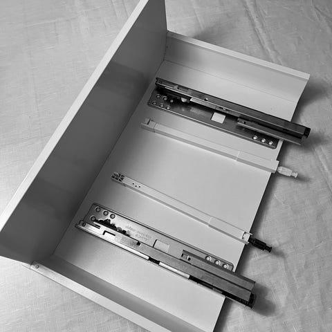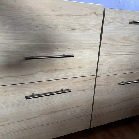 Fronterna sitter kvar med sina tillbehör som kan bytas ut till nya fronter från ikea.