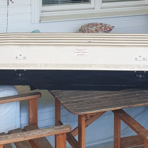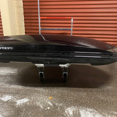 Äldre förvaringsbox täcker halva biltaket