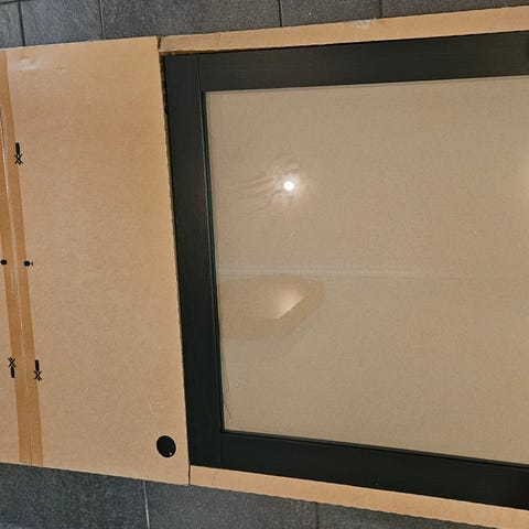 2 st Bodbyn vitrindörrar med svarta knoppar.