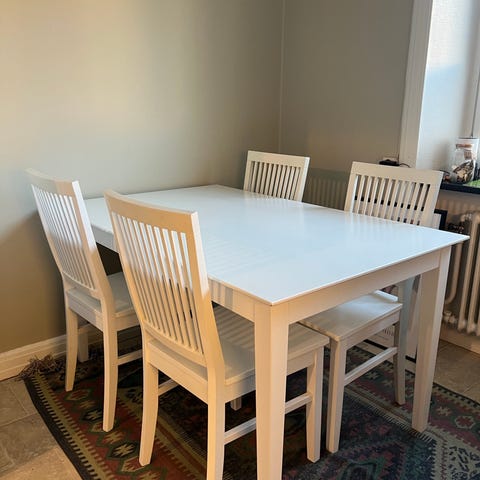 Svarta matstolar - stomme i metall och sits av naturväv.