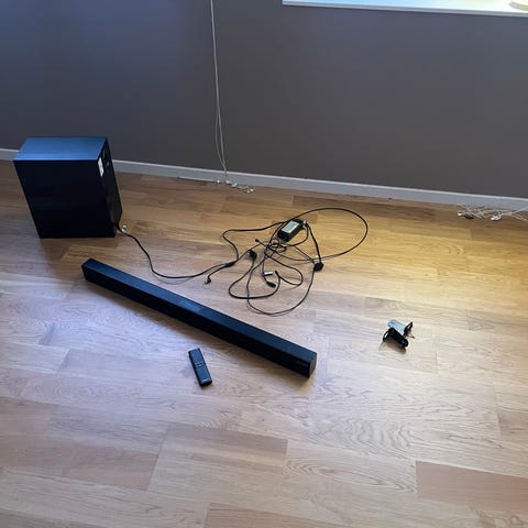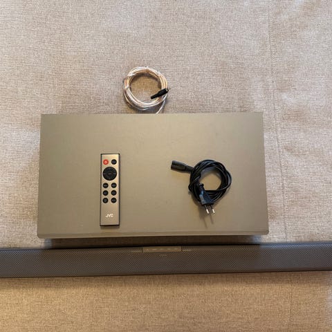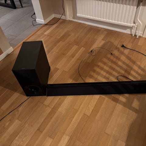 Har ingen användning av den längre säljer för en billig peng, kräver att man har en lg sound bar vet ej vilken. Går lätt att ta själva bas elementet för eget bruk