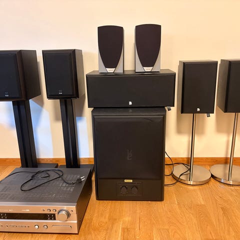 Kablar samt väggfästen för bakre högtalare medföljer