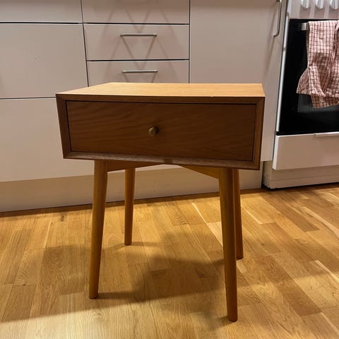 2 svart nattduksbord har fin framsida med öpoen hylla och låda för förvaring. Är använda.