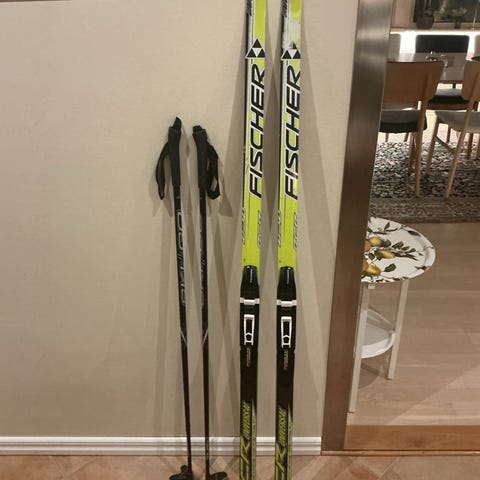Fischer sprint crown junior 150 cm NNN bindningar (justerbara), vallningsfria, mycket sparsamt använda. 700kr