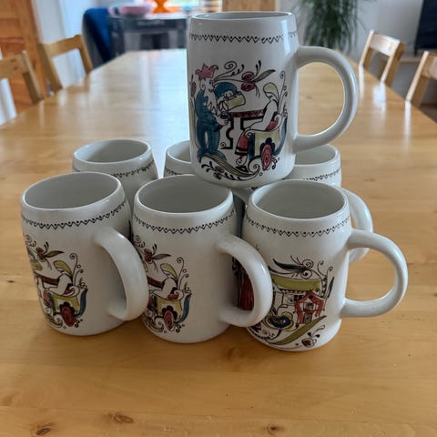 Fyra helt oanvända porslinsmuggar. Priset gäller alla muggarna tillsammans.