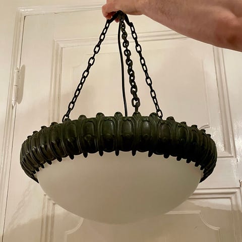 Taklampa i metall med frostat glas. Tror jugend.