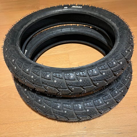 Dubbade cykeldäck från Rawbike men passar förstås liknande cyklar också. Rullat några dagar förra säsongen och nästan nyskick (dock lite smuts kvar). Av- och påtagning skett på verkstad. Säljs helst tillsammans för 1500kr, annars 1000kr/st.