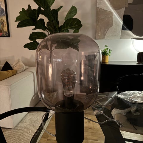 pendellampa, taklampa, glaslampa, pendelbelysning, takpendel, blått glas, mörkblått glas, rökfärgat glas, färgat glas, rund lampa, bollampa, klotlampa, modern lampa, stilren, skandinavisk design, Ilva, designlampa, kökslampa, matbordslampa, vardagsrumslampa, takbelysning, inomhusbelysning,