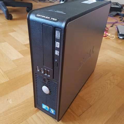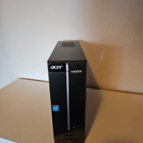 Datorn har flera USB-portar och en optisk enhet på framsidan. Passar för kontors- och hemmabruk där en stabil och pålitlig stationär dator behövs.