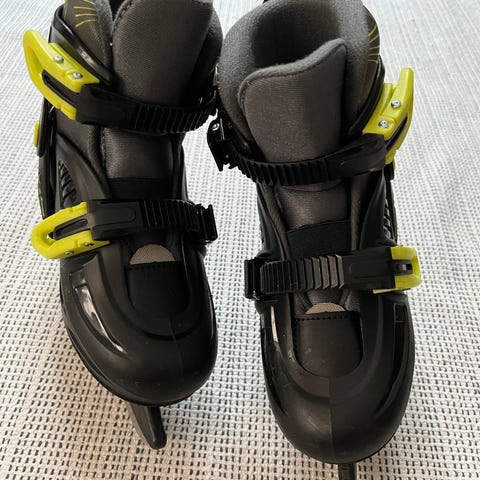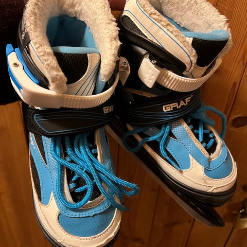 Justerbara i storlek och mycket sköna att använda. Konstruktion som en slalompjäxa. Enkel att ta på och sitter bra. Fräsch innersula.