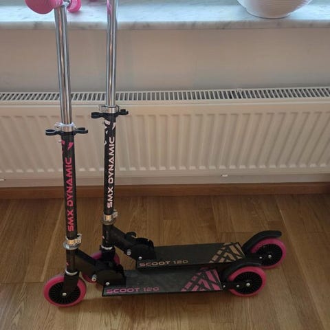 Köptes ursprungligen för att tas med på tåg och buss. Fälls enkelt ihop och får plats i bilens bagageutrymme.