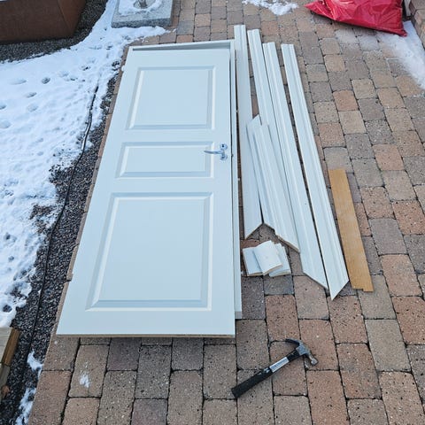 Brandklassade och ljudisolerade , väger lika mycket som en ytterdörr. Mått 9X21 ( dvs karmyttermått , 890 mm X 2090 mm, ) Båda är vänsterhängda , dvs att när man tar i handtaget och drar dörren mot sig så hänger den i gångjärnen i vänster sida . Behöver lite kärlek i form av rengöring och lite färg på något ställe. Hela och fina annars. Finns på Råå / HBG