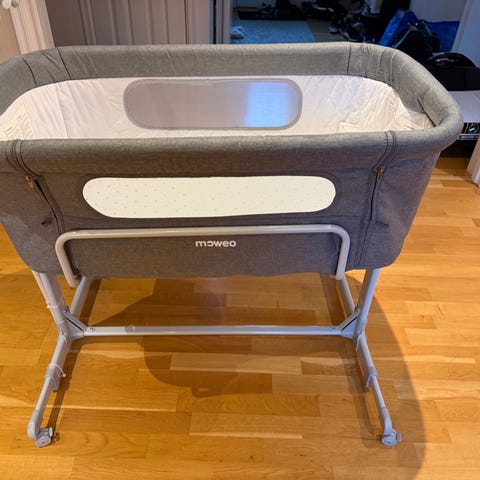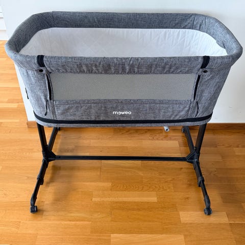 Superpraktisk bedside crib till den första tiden från Moweo!