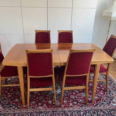 Troligen svenska eller danska 60 /70 tal retro omärkta ek bra skick nyslipade, nyinoljade. 2800 för alla sex stycken