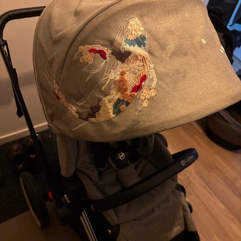 Cybex original tillbehör som ingår: Åkpåse, regnskydd och väska. Ståbrädan kan följa med för 500 kr.