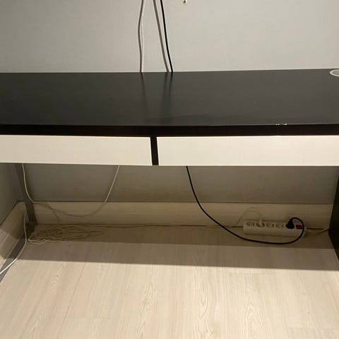 Stilrent och stabilt skrivbord från IKEA, modell HEMNES, i vitt. Tidlös design som passar lika bra i hemmakontor, sovrum eller vardagsrum.
