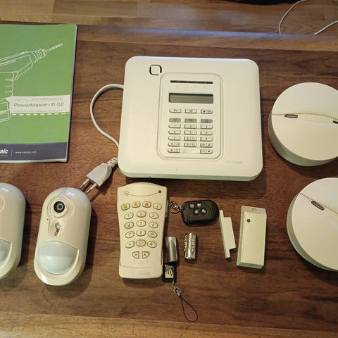 Verisure 6 månader gammalt komplett larm, Systemet inkluderar flera enheter för övervakning och detektering av brand och rök i hemmet.