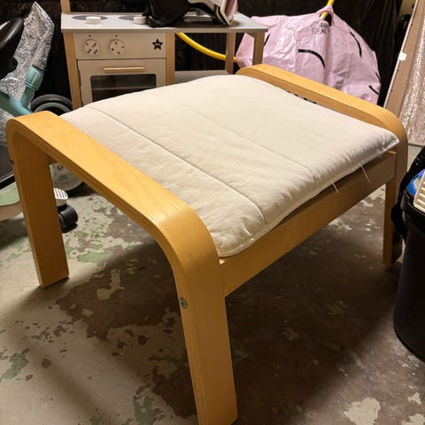 Tre fotpallar i bananfiber från IKEA. Dessa är handvävda vilket gör att varje pall är unik. Ramen är i stål vilket gör att den både kan användas som en fotpall eller som en sittpuff. Fotpallen säljs fortfarande: https://www.ikea.com/se/sv/p/alseda-pall-bananfiber-20033919/