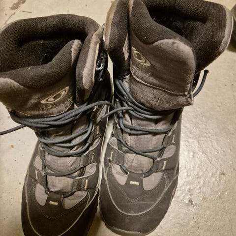 Salomon vinterskor i storlek 43 med svart färg. Skorna är utformade för vinterbruk med en robust sula som ger bra grepp på snö och is. Materialet är anpassat för att ge skydd och komfort i kalla förhållanden. Med dubbar. Mycket fint skick.