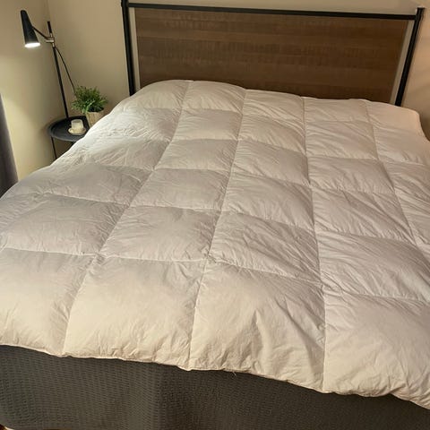 Den stora mängden dun gör täcket lätt och fluffigt.