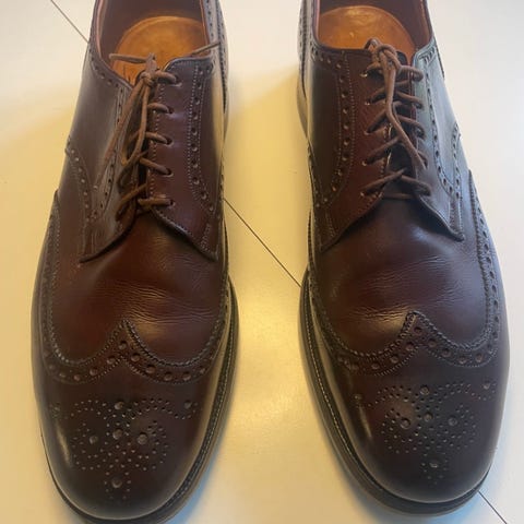 Säljer ett par randsydda skor, tillverkade av amerikanska skotillverkaren Florsheim i det exklusiva materialet Shell cordovan från garveriet Horween.