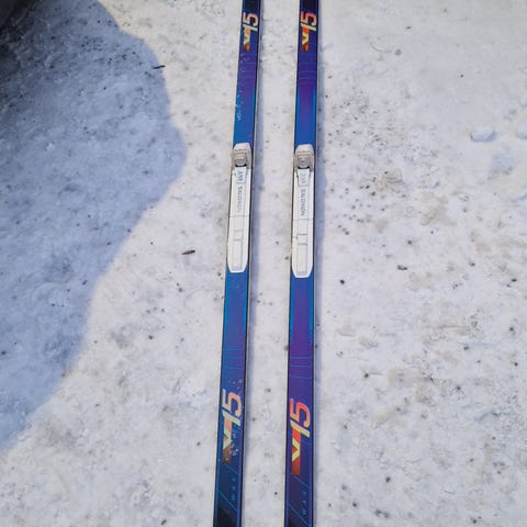Komplett skidkit med skidor, bindningar, pjäxor och stavar.