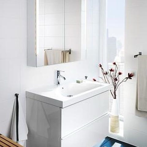 IKEA spegelskåp av modell Hemnes 83x16x98, belysning monterat på ovansidan.