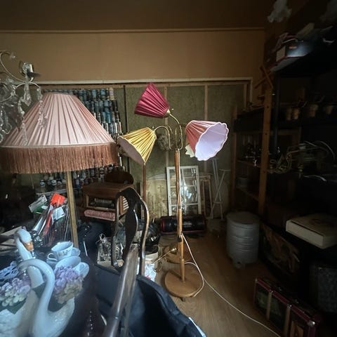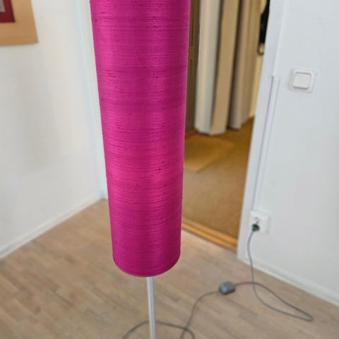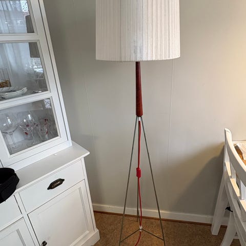 Röd golvlampa, med fot i porslin. Märke: Wallendorf, Tyskland.