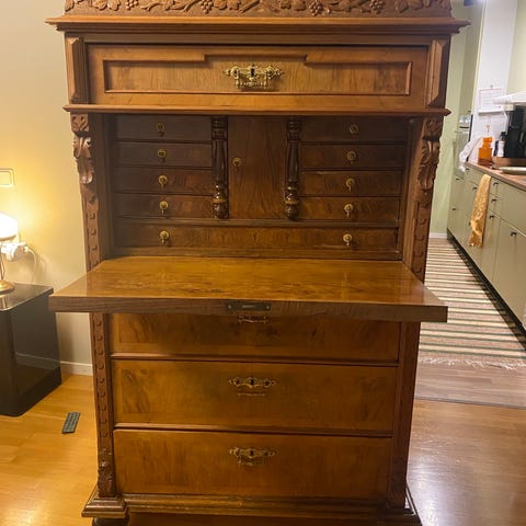 Sekretär byrå i trä med lådor 96x135x55 cm