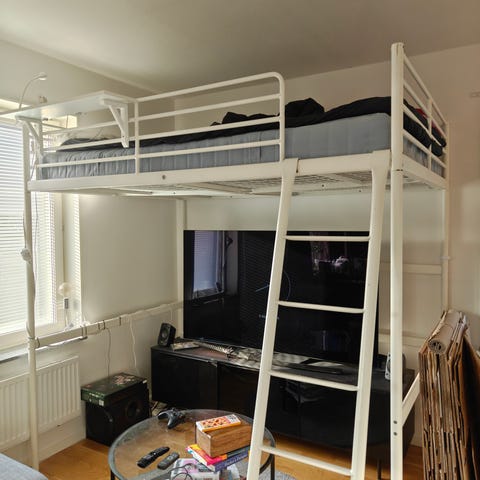 På grund av utrymmesskäl har vi inte monterat ner sängen ännu men gör det när vi är överens om köp.