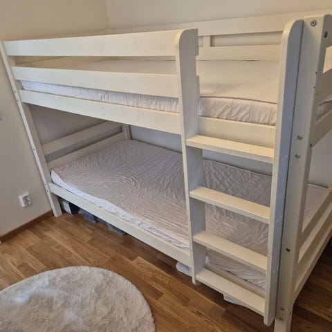 Fin vit våningssängstomme, IKEA Myrdal, ej delbar. Sparsamt använd. Madrasser ingår ej.