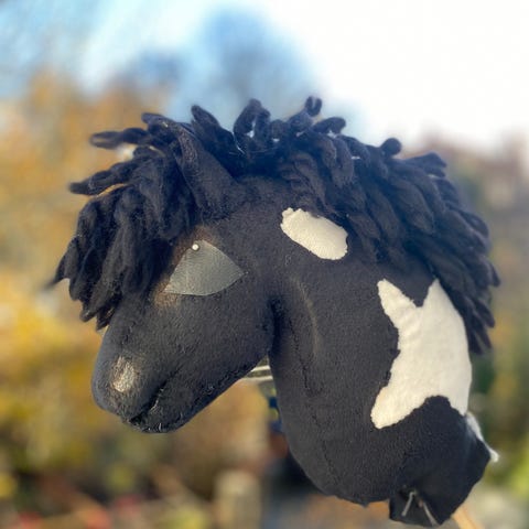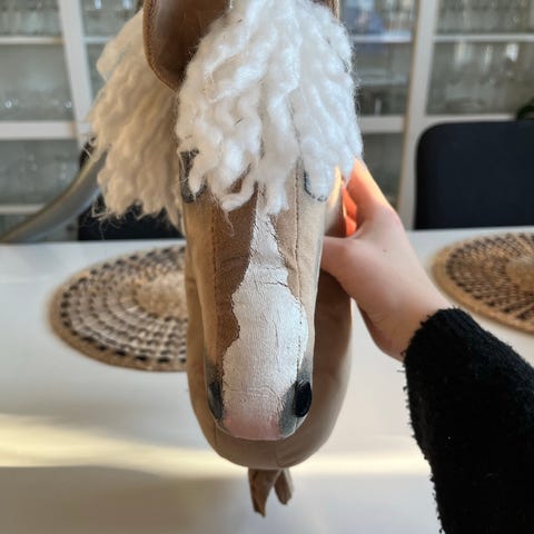 Jag säljer denna fina käpphäst med fina beige fläckar och vita. Köptes för cirka 3 år sedan men har inte använts på 2 år.