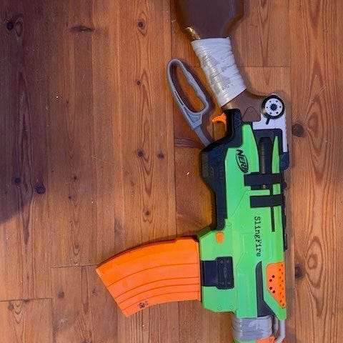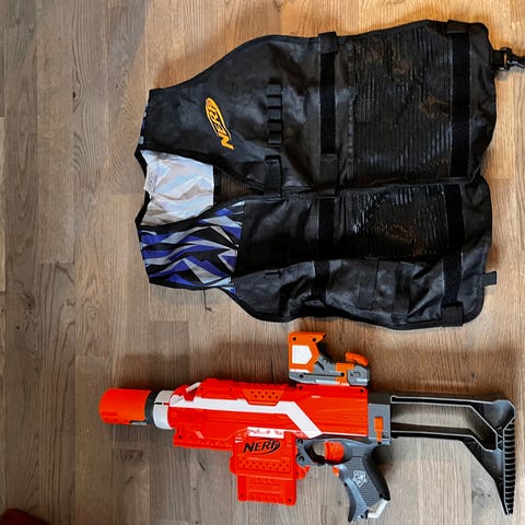 blått nerfgevär och nerfpistol combo 250kr