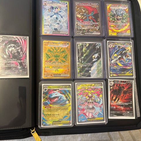 Pokémon kort samling inkluderar sleeves, plastfickor och en pärm. Sleeves läggs i en ETB låda