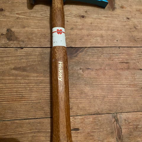 Hultafors hammare med gummihandtag för bättre grepp och kontroll vid användning. Verktyget är avsett för allmänt bruk inom bygg och hantverk.