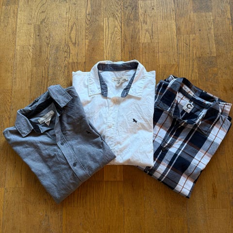 Klädpaket för pojke 158/164 cm. Det är ett par mörkblå jeans från Lindex i stl 164 (13-14 år), en brun skjorta från Zara i stl 164 (13-14 år) och en blå skjorta från H&M i stl 158 (12-13 år). Kläderna är varsamt använda. Hör gärna av er vid frågor.