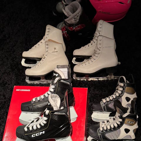 Skridskor, pjäxor, skidor, hjälmar