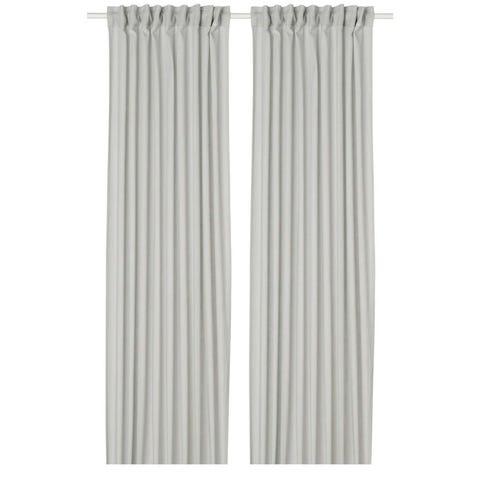 2 st ljusgråa/vita mörkläggande gardiner från Rusta 135× 220 cm
