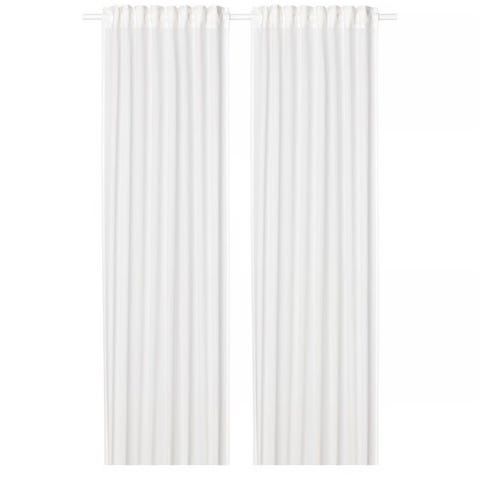 2 st vita Ikea gardiner i bomull med multiband 145×250 cm