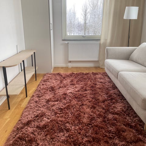 Säljer en fin ryamatta i cerisefärg.